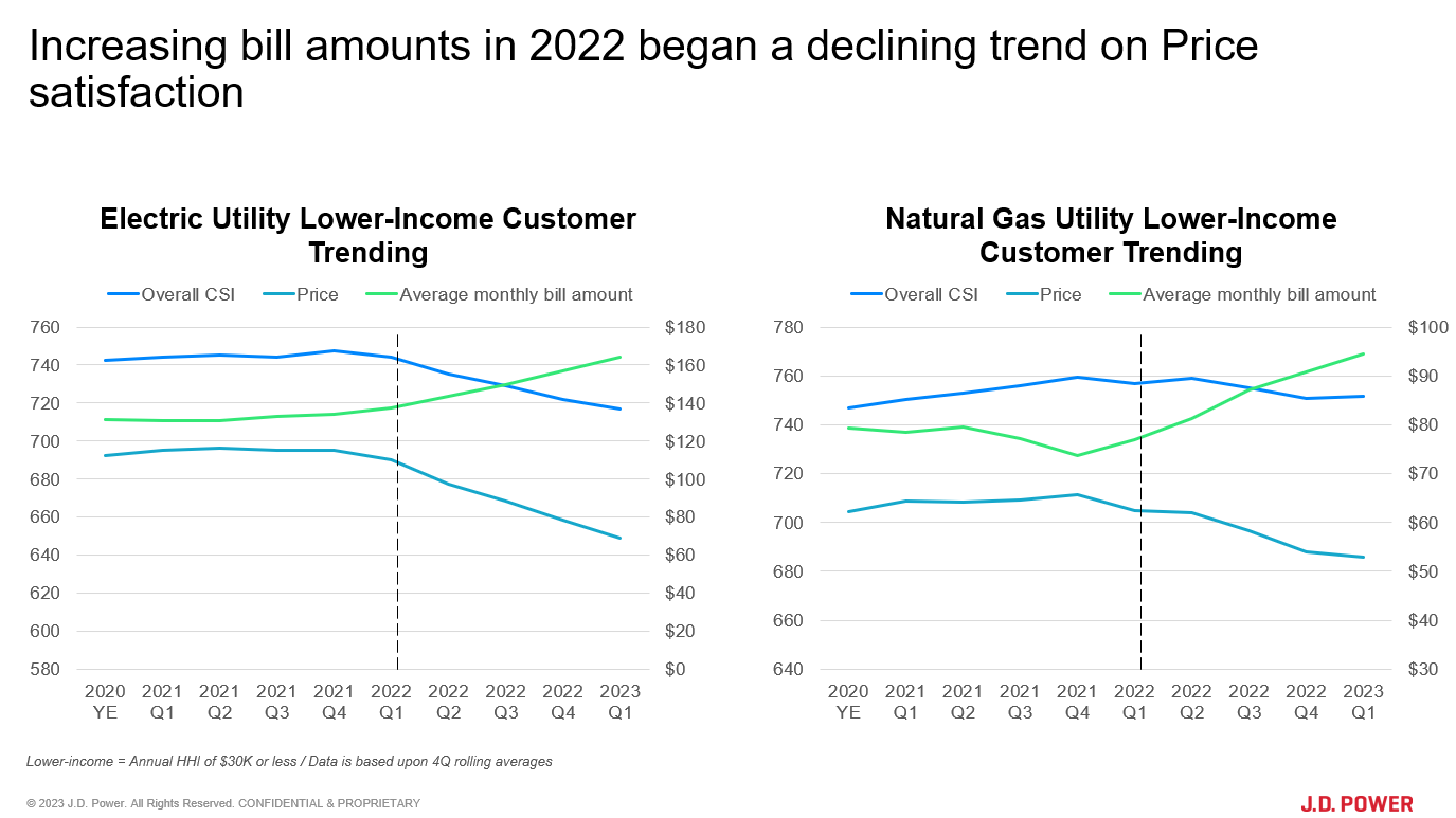 In 2022, we saw a pronounced declining trend on customer satisfaction with Price among lower-income customers, a segment that is already the lowest scoring on overall CSI. This trend is important for utilities to address as the lower-income segment is of significant size (22% of customers) and carries a heavier bill burden, so the problem will not resolve unless utilities step in to help these customers make ends meet.